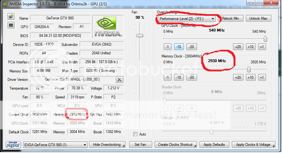 Grandpa_01 bcavnaugh I do not think Presison X will change the P2 state memory clock you need to Install Nvidia Inspector and look at the P2 state clocks I will bet it says 3004 which is 6008Mhz.