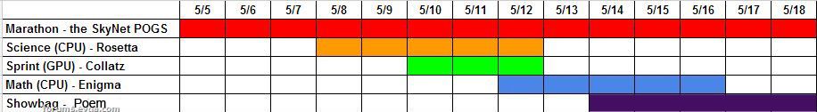 planetclown Good call, Yodap! Skynet POGS has been announced as the marathon project, which spans the entire contest. I wonder if they'll release the optimized application before then. Nice CPU, Orange. Bringing in some heavy artillary...I'm excited for you!