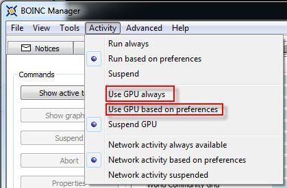 I went ahead and setup one of my Crunching Rigs (i7 2600K @4GHz with a GTX580) to run Rosetta and Collatz. I wanted to get a feel for how large these Pentathlon Project's WUs are and how long it would take to process them before the contest get's here. Initial forecast for the (2) WUs I have running Rosetta is 3hrs 10mins each. I also have (4) Collatz CPU WUs running and their initial forecast is 5hrs 20mins each. Note: this was by mistake as I intended to run only GPU WUs (see my other message below about that). The Collatz GPU WU has an initial wildly forecasted completion time of 8hrs, but in reality (having completed 2 of them now) the completion time is only ~30mins. Collatz is hitting my GTX580 for ~81-88% GPU usage. A reminder for those that have not yet setup BOINC to add these (2) Projects to your list. Remember to complete your profile over at the Rosetta and Collatz sites and make sure that you have selected "Crunching@EVGA" as the Team (defaults to no team). After you log-in, in your Profile page look for the "Community" section on that page as shown below and make sure our Team is selected as shown. Rosetta@Home Login site: http://boinc.bakerlab.org/rosetta/login_form.php Collatz Conjecture Login site: http://boinc.thesonntags.....php?next_url=home.php Also with Collatz, since it is a GPU Project, make sure that you have enabled the GPU to be used by BOINC in your Preferences. If you don't do this, you will not notice your GPU being used for the WU (ala looking at the "GPU Usage" line in the EVGA Precision monitor software). You can can easily activate the GPU (in BOINC) via the "Activity" tab in the BOINC Manager and selecting either "USE GPU always" or "Use GPU based on preferences". One of the two highlighted areas below is what you want to select.