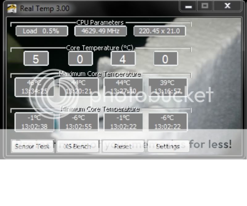 overclocker333 Much thanks to ty_ger07 for the slick looking Real Temp skins!!! No problem man. Thank you. Wow! Look at those idle temperatures!!! Very jealous.