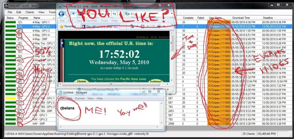 dlebryk Will happily delete this if I wasn't supposed to post here. In any case, I want to stash the link for the screenshot someplace. Since this is moderately confusing, I'd rather not wait til later and find out I did it wrong. How about the points we have so far!!! Man, amazing. Double the second place team???? Great job. According to the original post you still need to add a HFM.net or fahmon window into the mix. Also, just as a suggestion, if you close that GPU viewer your PPD will be fairly significantly higher!