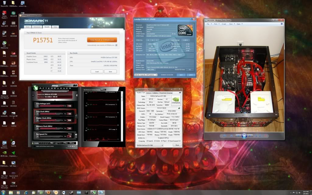 My new top after finally getting somewhere on my CPU/GPU overclocks. :) AHowes ------------------ i7 980X @ 4.666 -------- (4) 580 -- 1886/2200 ------------ 62442 --- 89531 --- P67552 Water