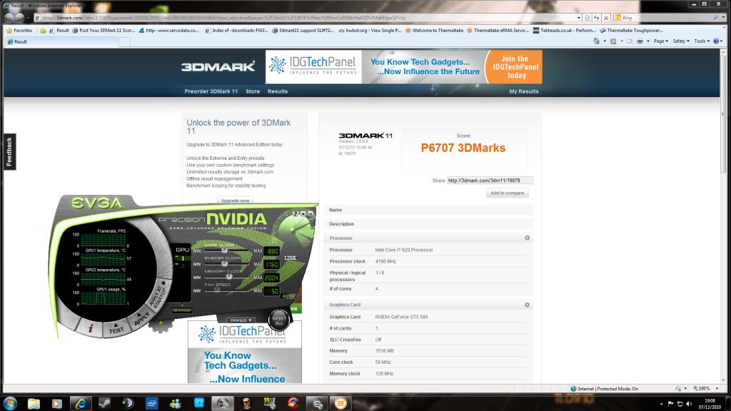 3dmark11 http://3dmark.com/3dm11/26002 johnksss---------------- i7 980X @ 4.7 ---------- (1) 580-- 2080/2300 ---------- 7285------10462------7200------P7623------H20