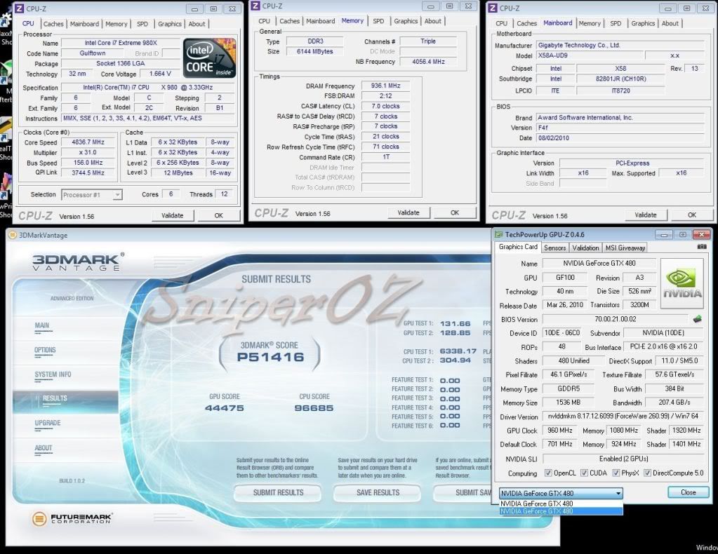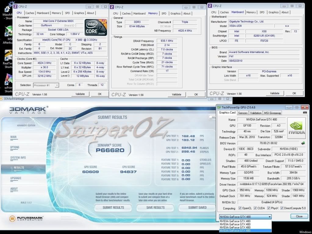 A Little update for 4way.....need LN2 to catch Gunslinger  ....its coming!!!! SniperOZ ------------- i7 980X @ 4.82-------- (4) 480SC 1900/2180 ----------- 60609 --- 94837 --- P66,620 --- Water http://service.futuremark.com/compare?3dmv=2671940