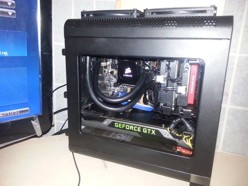 Intel Core 4770K @4.25GHz Asus Maximus VI Impact Crucial MX200 M.2 SSD 512GB EVGA GTX 970 FTW+ Corsair Vengance PRO RAM 8GB @ 1866MHz NCASE M1 V2 Noctua L9X65 CPU Cooler Corsair SF450 450 Watt PSU