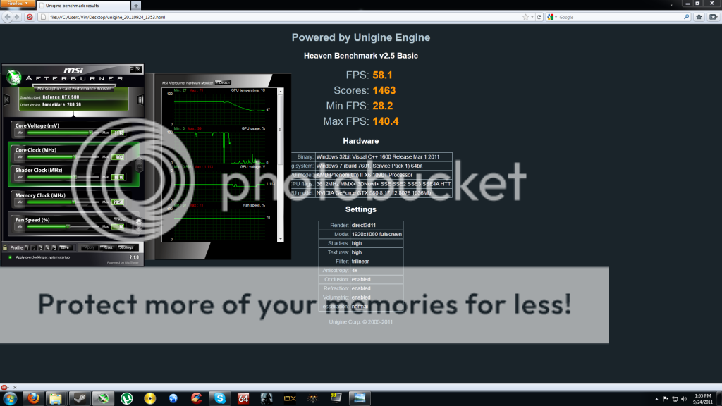 skaytersurf Well on gpu intensive games like The witcher 2 ive had fps jumps from 40-50 @ stock clocks now im 50-60+ fps @ 905mhz/1810 ( Keep in mind the settings are @ ultra and not Ubersampling). Bad company 2 doesnt even drop below 60 ever , even at stock clocks so i dunno. Trying crysis 2 in a bit so ill get back to you on that Awesome please do that for me I'm really interested in seeing what i can do with mycard for more FPS. I've set my card to the SC settings i dunno if im getting much of a fps increase or not i assume its stable i haven't seen any artifactings or had strange crashing. what do you use to test stability???
