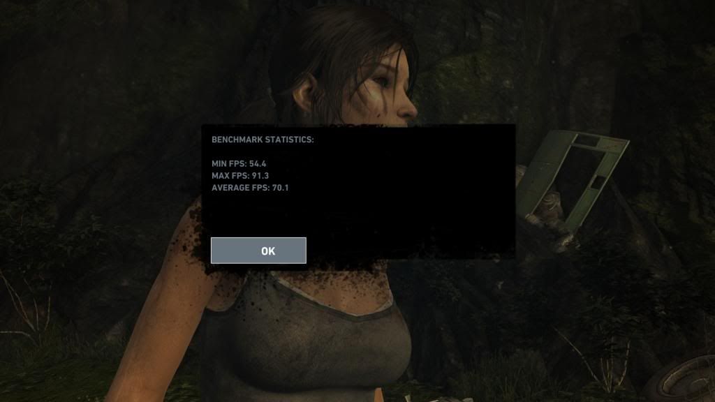 Tomb Raider is truly amazing to look at. Full ultra 16x/MSAA/TessFX/basically everything maxed, this is what I benched at with Vsync off- 70.1 avg/91.3 max- this is with 2x670 FTW's@1254mhz(+58 oc)/3604mhz memory(+500)