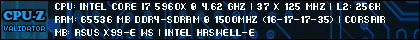 1) ASUS Z97-WS, i7-4790K@4.9GHz, 2-Way-SLI - EVGA GTX Titan X SC - EK block/plate, Custom loop, 32GB GSkill Ripjaws DDR3-2400, Samsumg Pro 850 SSD, 2-2TB WD Black, Phanteks Primo Case, Win 10 Pro 64bit, 4K Acer XB280HK monitor, EVGA 1600 P2 Supernova PSU, Fire Strike 1.1 = 21,842 2) EVGA X99 Classified, I7-5960X, 2- Titan X Pascal, 32GB GSkill Ripjaws DDR4-3000, Intel NVMe PCIe 750 SSD, Win10 Pro,PSU EVGA 1200 P2 Folding 2.5M PPD Affiliate code 05MLLDCG6B